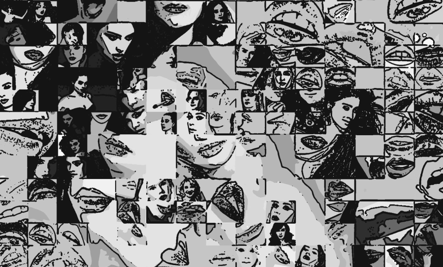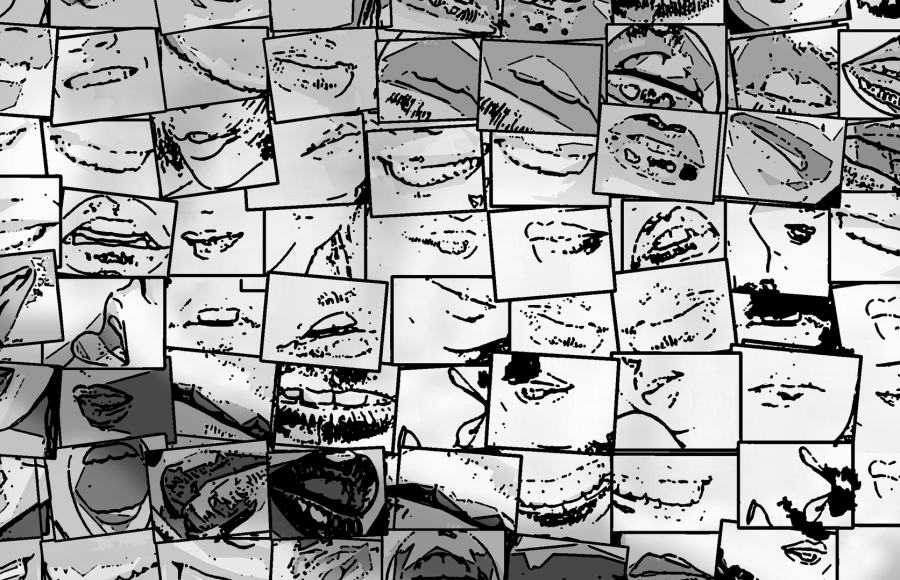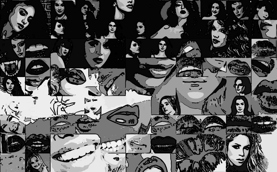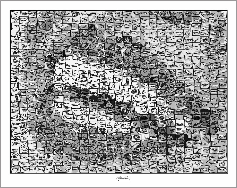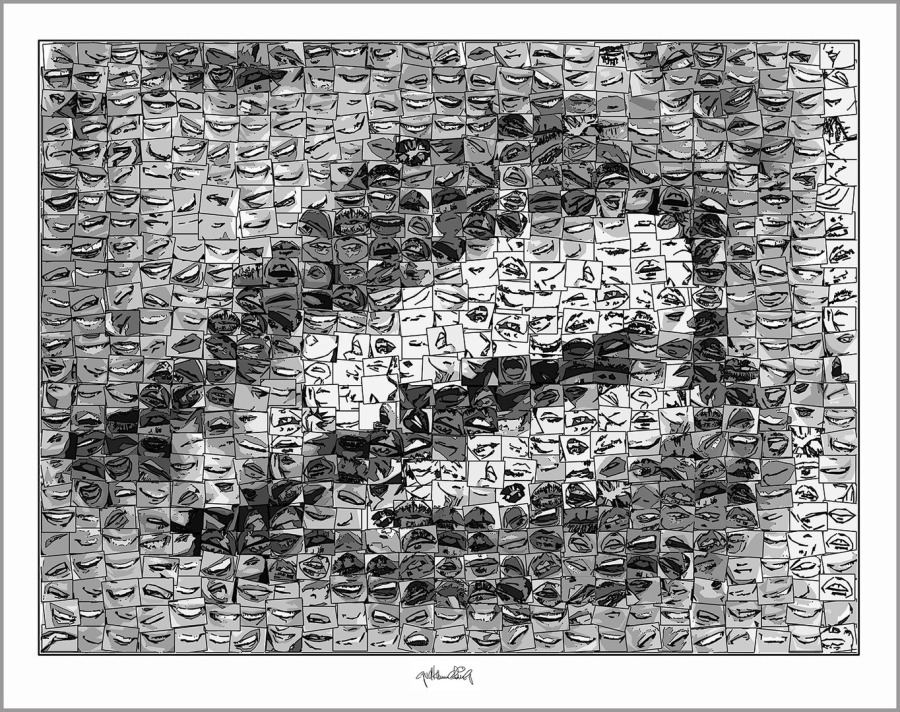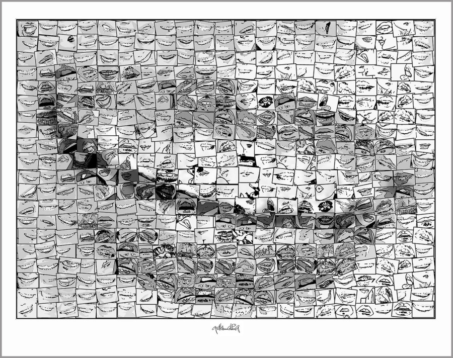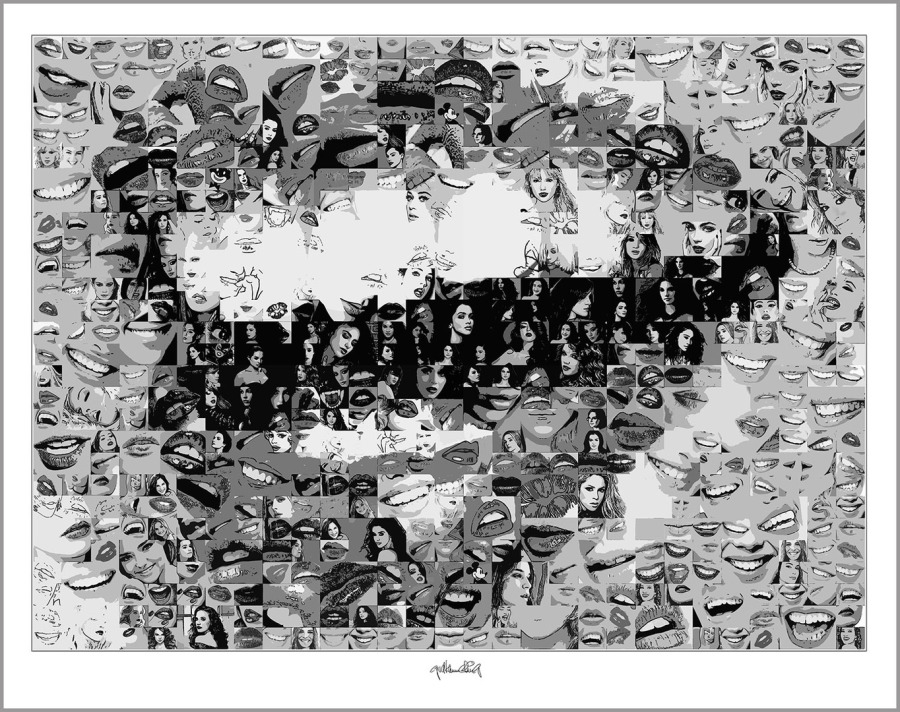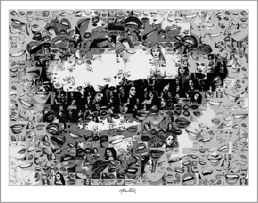 Rote Lippen, perfekte Zähne Wandbilder auf IHREN weißen Wänden zur sind nicht nur gediegen stilvoll, sondern auch ein starkes Symbol - hier als schwarz/weiß Exponate umgestzt.