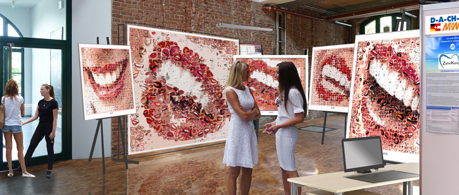 Wir bieten eine Auswahl von einer Vielzahl an „Zahn" Motiven - von harmonischen Lippen Ensembles bis hin zu lebhaften, abstrakten, modernen Umsetzungen, Wandbilder die das Auge binden, die Ablenkung und positive Stimmung vermitteln.