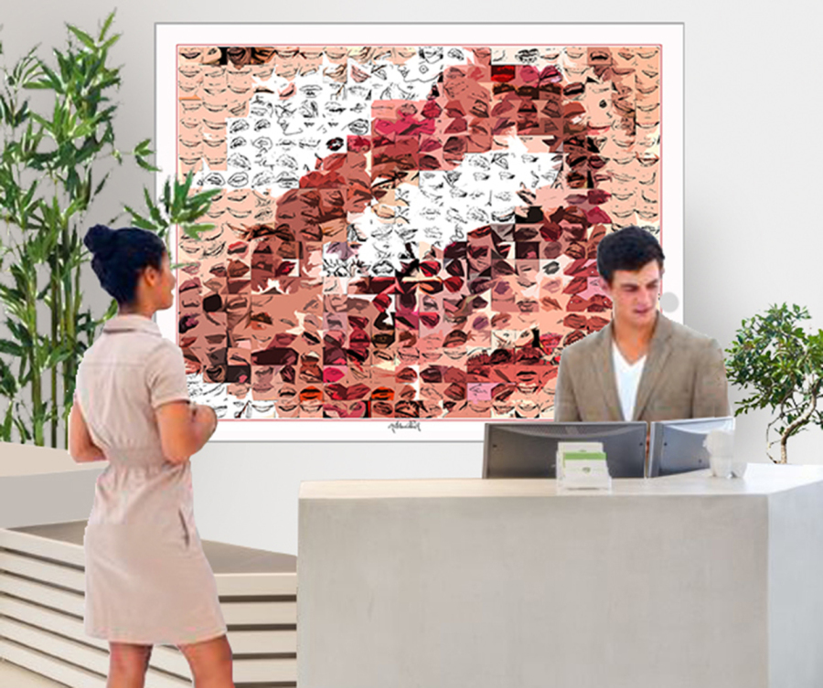 Hochwertige Wandbilder und Kunstwerke verstärken den professionellen Eindruck Ihrer Praxis und heben Ihre ästhetischen Standards hervor. Besonders auf ruhigen, strukturierten Wänden entfalten die Bildserien ihre volle Wirkung und geben dem Raum Tiefe. Die abstrakten Lippen- und Fragmentumsetzungen erzählen kleine