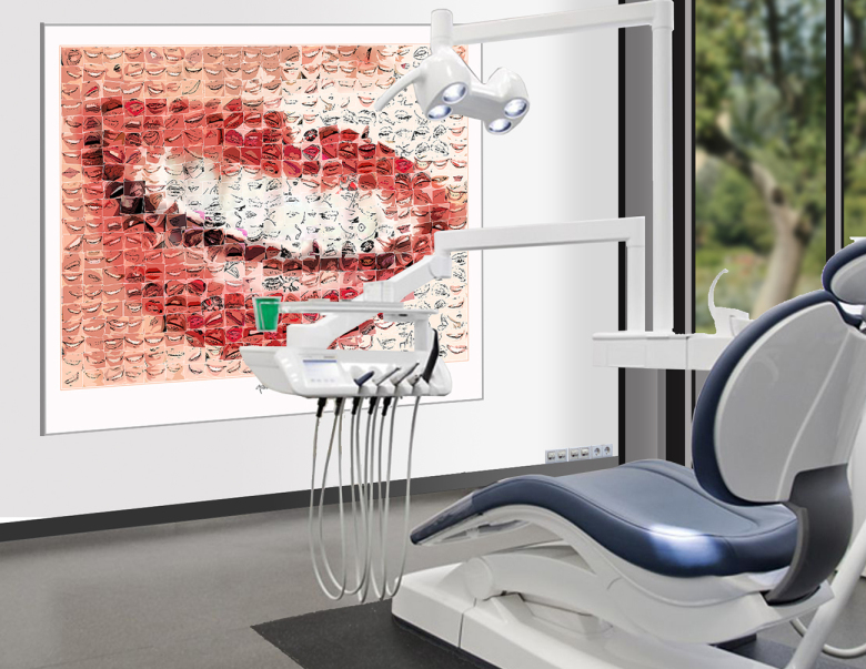 Ästhetische Zahn-Kunst für Ihre Praxisräume – modern, hochwertig, ungewöhnlich. Optimal für moderne Praxen, jeder Raum wird zum Blickfang. Diese Kunstkonzepte sind ideal für Zahnarztpraxen, da sie den Fokus auf das Lächeln und die Ästhetik der Zähne legen, gleichzeitig eine einladende und stilvolle Atmosphäre schaffen.