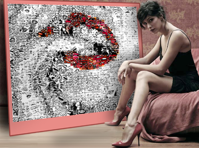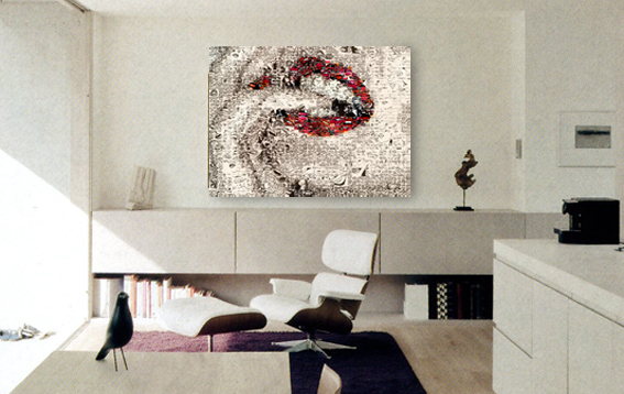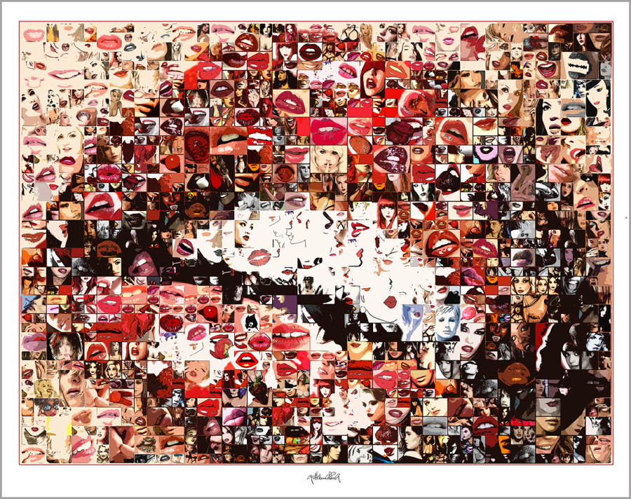 künstlerische Konzept zurück: Was zählt, ist die Wirkung. Rote Lippen, geöffnet zum Lächeln, erzählen von Intimität, Schönheit und der Kunst des Sehens. Bilder für das Auge des Ästheten. Wandbilder
