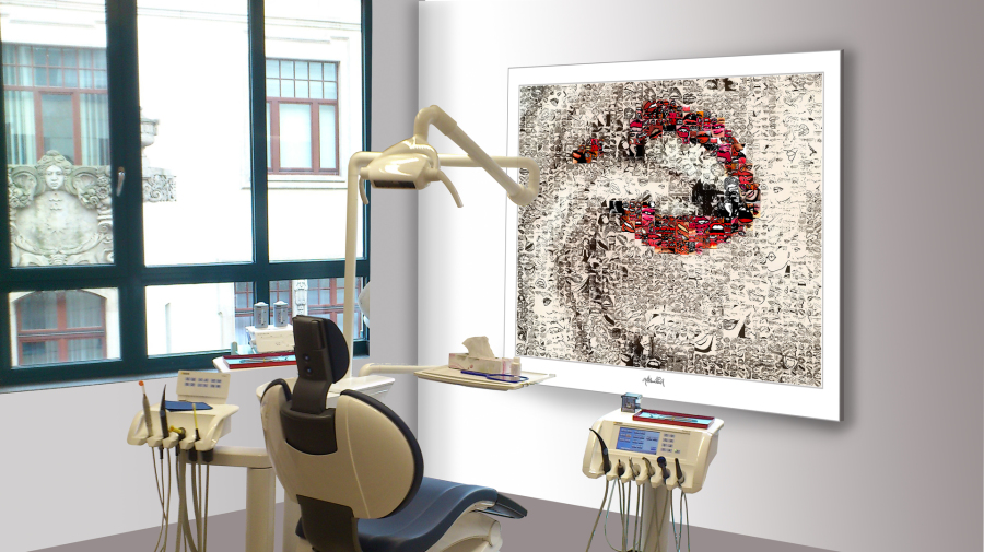 Stilvolle Wandbilder mit Zahnmotiven bringen Charakter in Ihre Zahnarztpraxis. Moderne Kunst schafft ein angenehmes Ambiente im Wartezimmer. Eine Praxisgestaltung, die in Erinnerung bleibt. Unsere