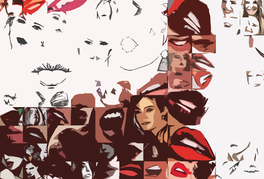 Collage, sondern eine erzählerische Vision. Die einzelnen, fein ausgearbeiteten Elemente werden mit künstlerischer Verfremdung bearbeitet – sie erzählen von Identität, Fragmentierung, Kommunikation.