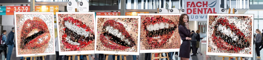 Moderne Wandbilder mit Lippen- und Zahnmotiven, die jeden Praxisraum lebendig machen. Eine Verbindung von Dentalästhetik mit